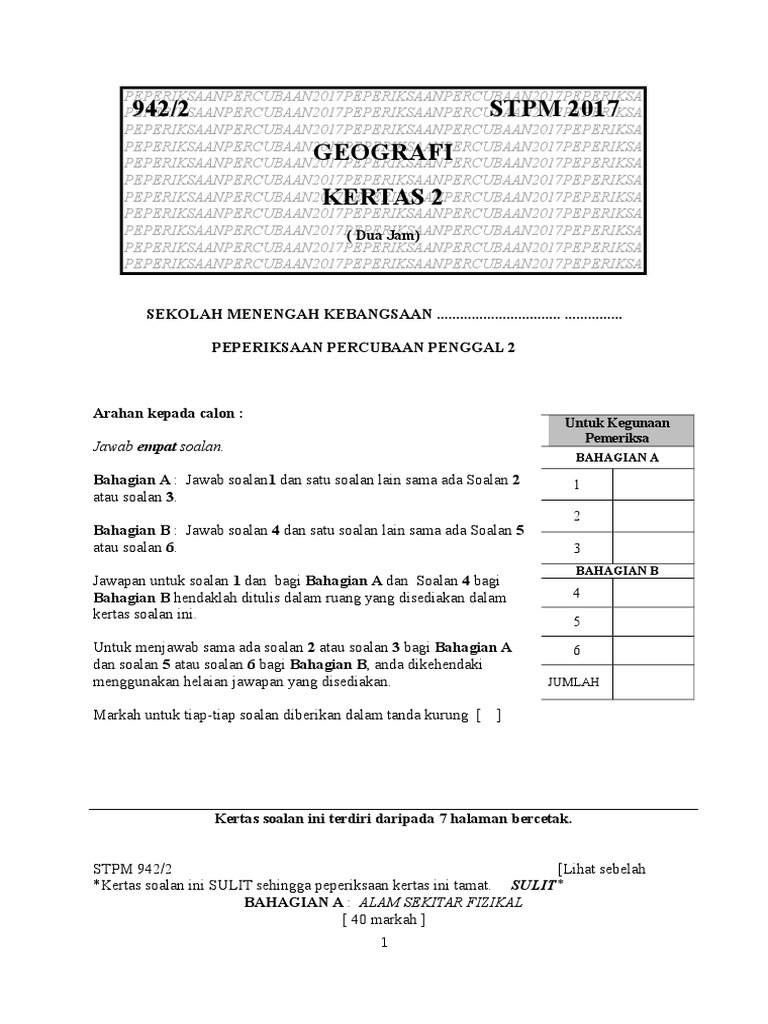 Get free exam tips 2017: Sukatan penggal 2 stpm geografi bahagian b : Kertas ini rnengandungi tiga tema, iaitu masyarakat, pemerintahan, pentadbiran, pertahanan, dan perhubungan luar, pembangunan dan penerokaan. 14, 15, 16 & 20 november 2017 tarikh peperiksaan bertulis ulangan penggal 2. ► 2017 ( 53 ).
